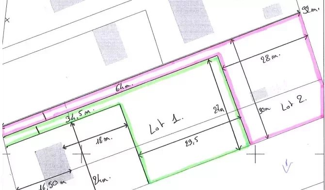 Terrain Donges Lot 2 terrain constructible de 1078 m² non viabilisé Façade et profondeur d'environ 30m. Zonage UBa3, emprise au sol maximum de 60%...