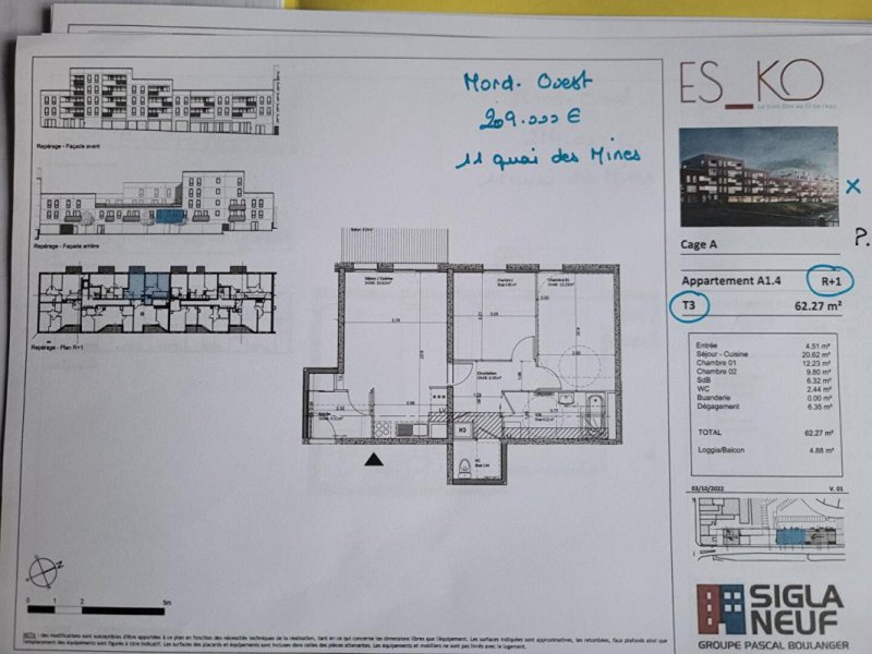 Etaples 62630 A 5mns à pied de la Gare je vous propose dans une résidence de standing un T3 de 64 m² au 1er étage avec ascenseur. L'appartement...