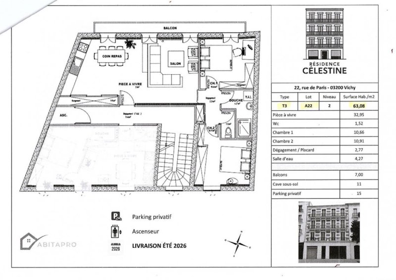 Dans le centre de Vichy ( a 100m des 4 chemins), Philippe Laboudigue vous propose ce bien dans un immeuble de caractere classé (ancien hotel ) qui...