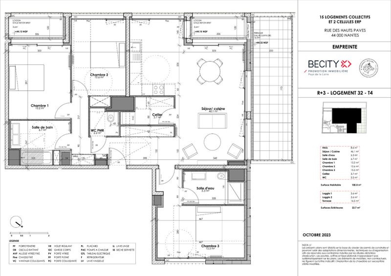 Appartement type 3, 67 m² habitables, secteur Jules Verne, 3 pièces, 2 chambres, stationnement. Laissez-vous séduire par la situation géographique...