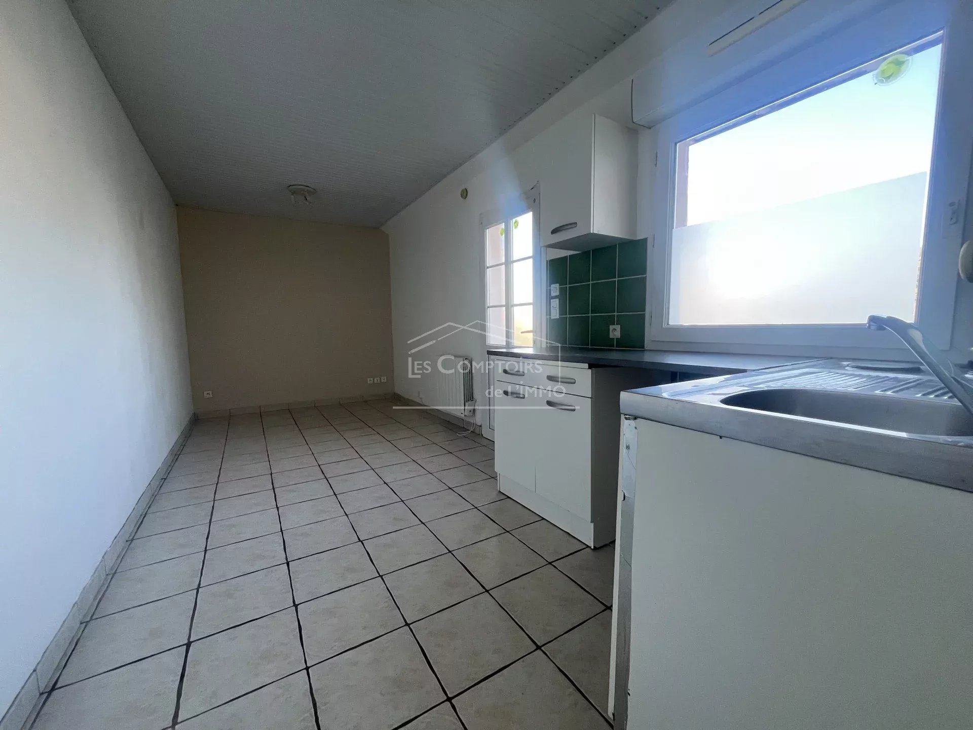 DONGES CENTRE Maison/appartement avec jardin et terrasse, de type 2 comprenant : Entrée, séjour avec cuisine aménagée et équipée (éléments hauts...