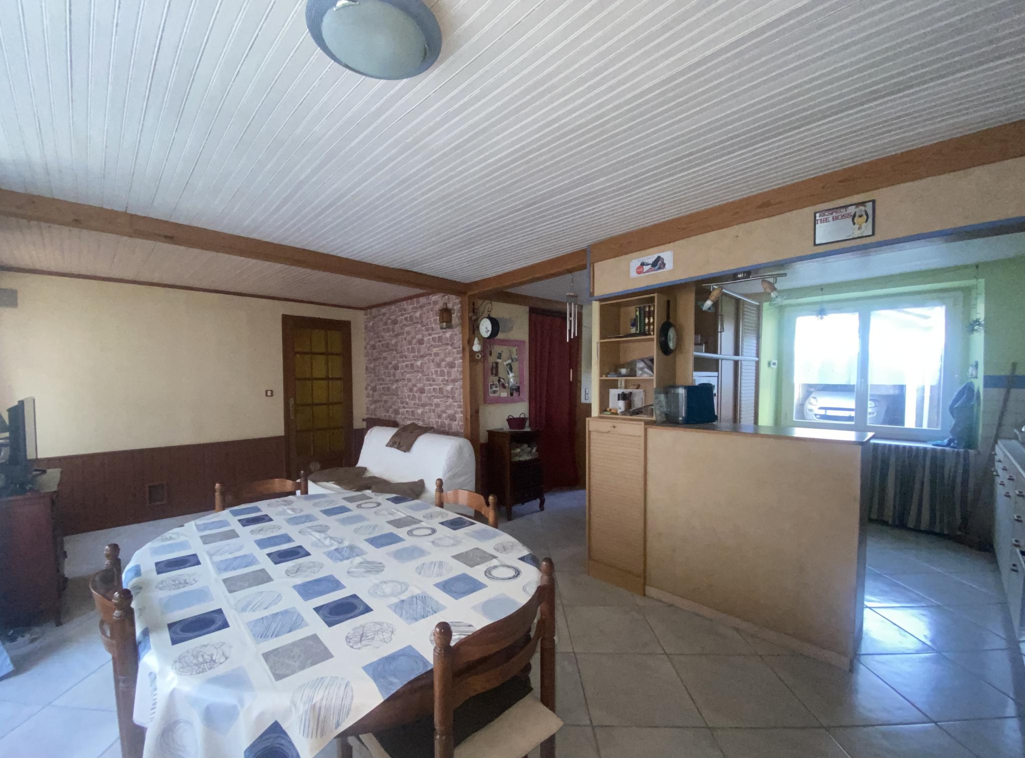 Maison en plein centre bourg sur 2 niveaux comprenant au rez-de-chaussée : Pièce de vie lumineuse traversante avec cuisine aménagée, un dégagement...