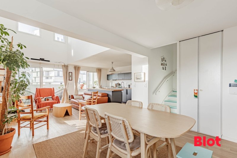 Quartier Procé à Nantes. Ce superbe appartement de 114 m2 en duplex avec vue dégagée et triple exposition se compose : Au RDC : d'une grande pièce...