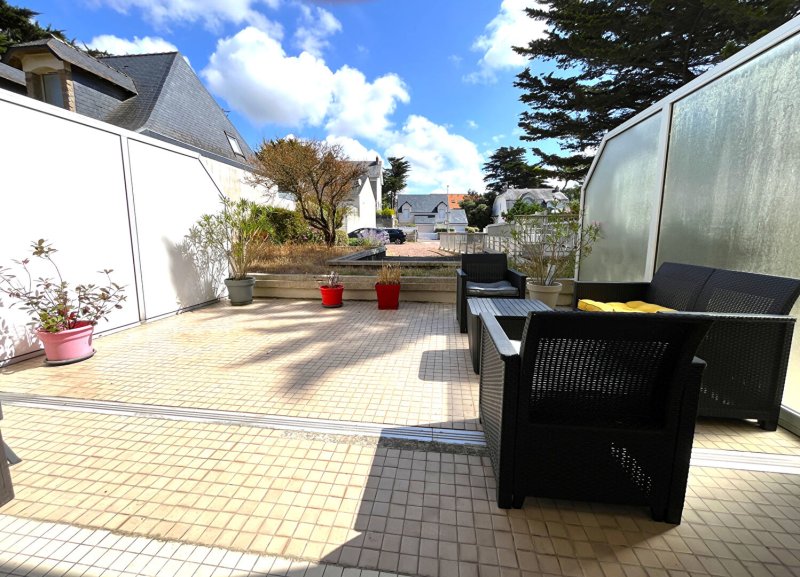 Studio avec grande terrasse à Pornichet Situé en rez-de-chaussée d'une copropriété idéalement placée face à la mer, ce studio de 21,96 m² vous...