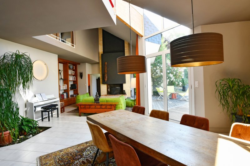 A Savenay, emplacement idéal, centre ville, au coeur de son parc arboré de 2000 m2, clos de murs en pierre, cette magnifique villa d'architecte...