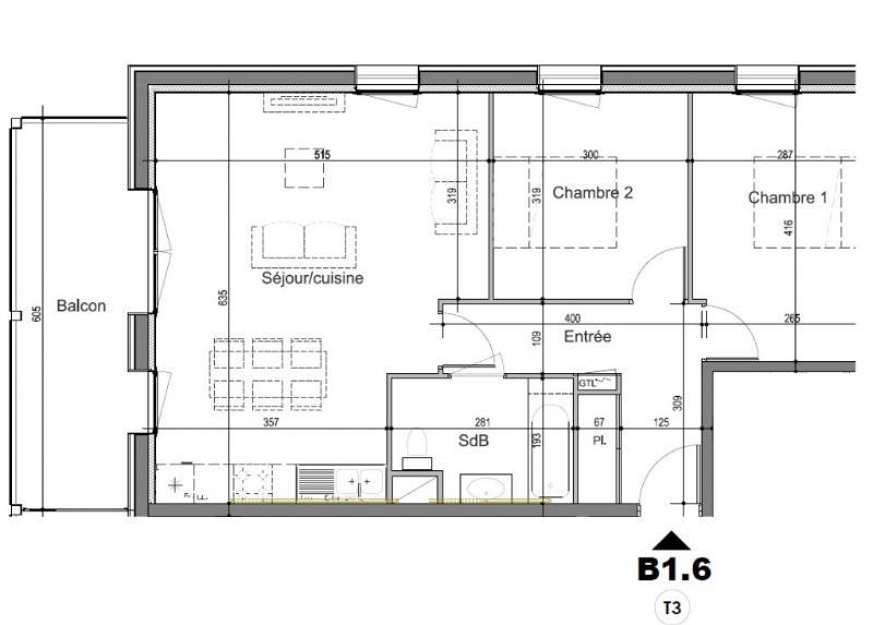 SAINT-HERBLAIN. Dans résidence BBC, proche tramway et commerces, agréable type 3 comprenant un séjour de 28.80m² avec cuisine ouverte aménagée et...