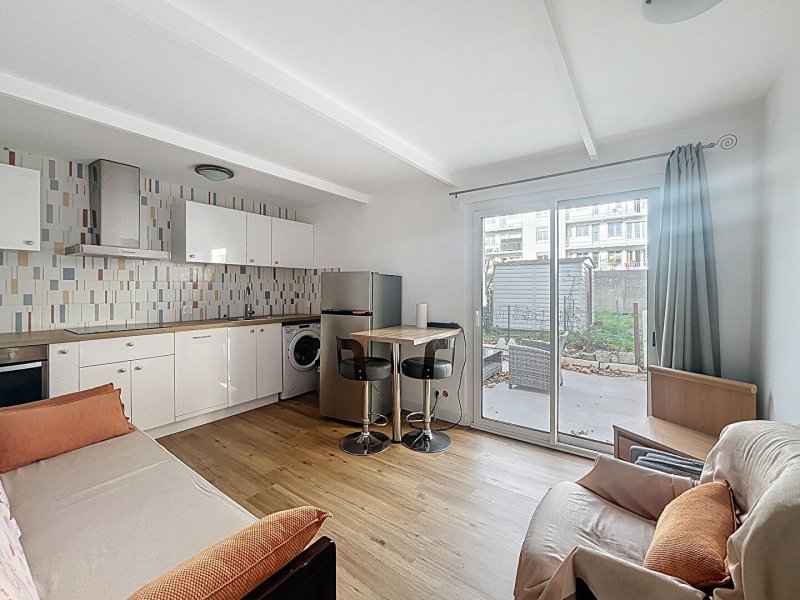 Appartement bien agencé de deux pièces au rez-de-chaussée surélevé d'un petit immeuble des années 1930. Cuisine et salle d'eau récentes. Caveau...