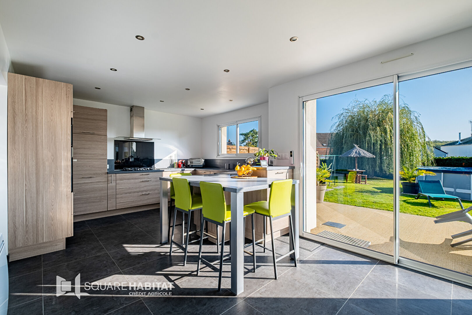 Maison très récente en impasse, d'environ 104 M². L'entrée distribue une pièce de vie lumineuse orientée SUD-OUEST, cuisine aménagée et...