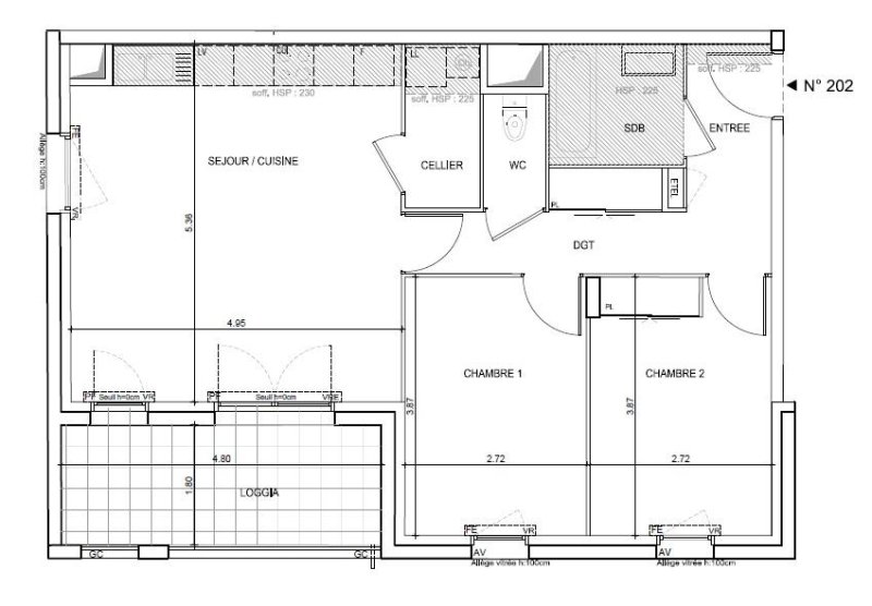 A LOUER - HAUTE GOULAINE Centre ville - Appartement 3 pièces de 64.62m² - Dans une résidence de 2020, sans ascenseur, appartement de 3 pièces de 64.62m² avec loggia de 8.64m² au 2ème étage exposé SUD. Ce logement comprend une entrée, une salle de bains, WC séparés et 2 chambres dont une avec placard. La cuisine aménagée et équipée, est ouverte sur le séjour qui donne accès à la loggia. DEUX places de parking aériennes. Chauffage et eau chaude individuels au gaz.
