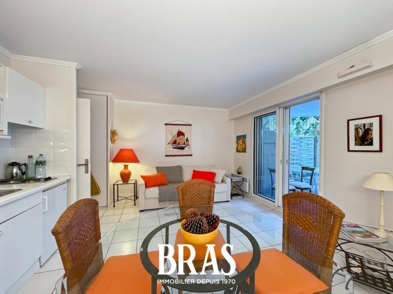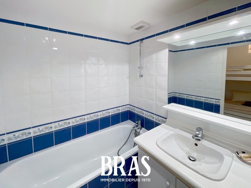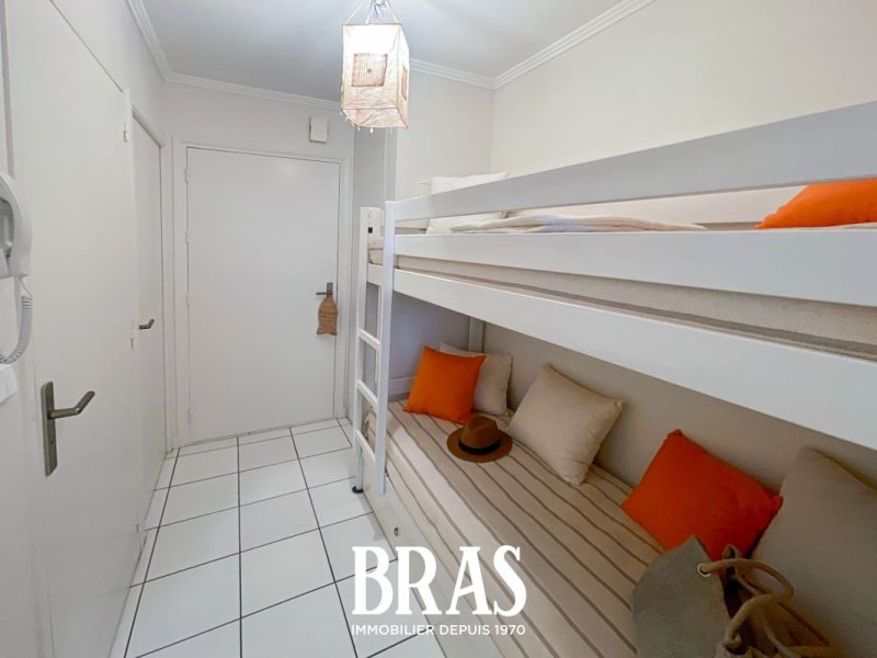 Dans une résidence de 1998, studio cabine MEUBLÉ de 22.65m² situé au rez-de-chaussée et comprenant : une entrée avec placard et lit superpoposé, un salon avec canapé lit, une cuisine aménagée et équipée (deux plaques de cuisson électriques, four, hotte, meubles hauts et bas et frigo table top), WC séparés, une salle de bains.