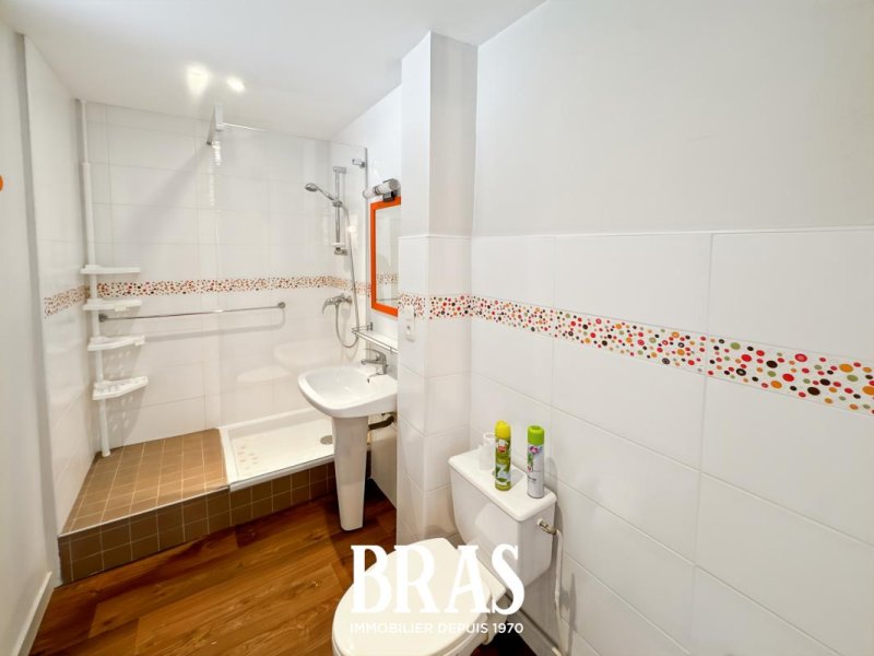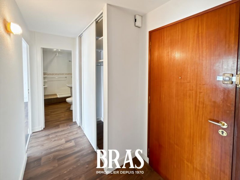 Un appartement de type 2 de 45.47 m² situé au deuxième étage avec ascenseur et comprenant une entrée, rangement, séjour donnant sur un balcon , cuisine aménagée et équipée (plaques de cuisson gaz et hotte), une chambre, une salle de bains avec WC