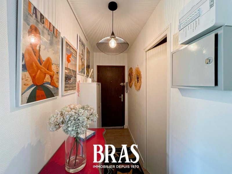 EN PLEIN COEUR DE LA BAULE - Situé au 2ème avec ascenseur, un appartement meublé de type 3 de 61.93 m² comprenant une entrée avec placard, une pièce de vie très lumineuse donnant sur un grand balcon exposé SUD, une cuisine entièrement aménagée et équipée, 2 chambres avec placard, une salle d'eau et un WC séparé.