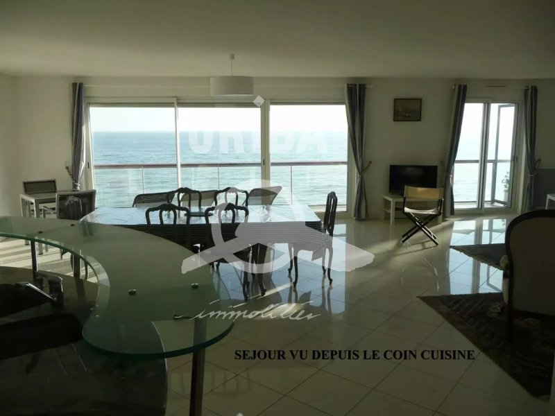 LOCATION MEUBLEE DE STANDING (36 mois renouvelable par un bail de droit commun) d'un appartement de 121.95 m² situé au 4ème étage d'une belle résidence: Entrée, salon- séjour double face mer et terrasse, cuisine très haut de gamme A/E, 3 chambres, salle de bains balnéo en marbre, salle de douche avec buanderie, wc. Garage, cave et parking extérieur. +33 2 40 61 09 88 - +33 2 40 61 09 88