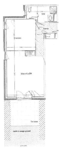 LA CHAPELLE SUR ERDRE - QUARTIER PERRIERES, dans résidence récente BBC, idéalement situé à 300 m de l'arrêt de bus et à 7 min à pied du train-tram, appartement T2 au rdc comprenant une entrée avec placard, un séjour de 24 m² avec coin cuisine équipée de plaques électriques et d'un frigo, une chambre, une salle d'eau avec WC. Une agréable terrasse de 10 m² complète l'offre ainsi qu'un stationnement extérieur numéroté. Le Chauffage, l'eau chaude et froide sont compris dans la provision pour charges.