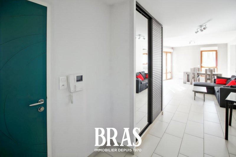 Allée du Clos Rozaie - À proximité du bourg, dans un environnement boisé, un appartement de type 2 MEUBLÉ de 62,26m² situé en rez-de-chaussée et comprenant : une entrée avec placard, un séjour de 37,20m² avec cuisine aménagée et équipée (plaque de cuisson, hotte, four, réfrigérateur, lave vaisselle et lave linge), donnant sur une terrasse privative, un cellier, un dégagement avec placard, une chambre de 12,90m², une salle d'eau avec douche, lavabo, WC et un second WC séparés.