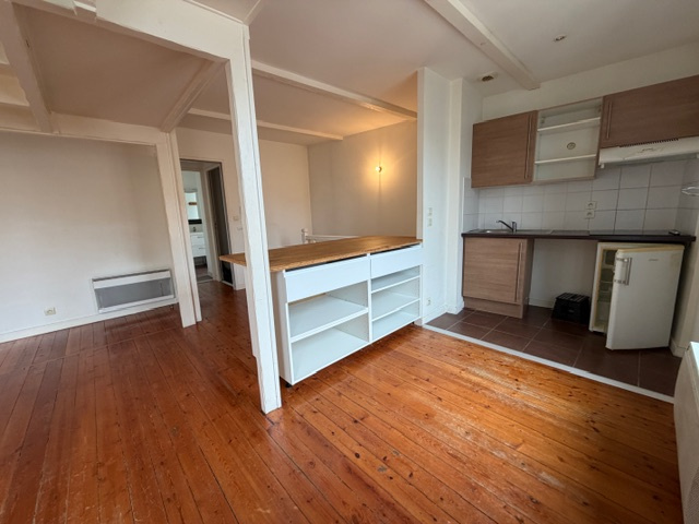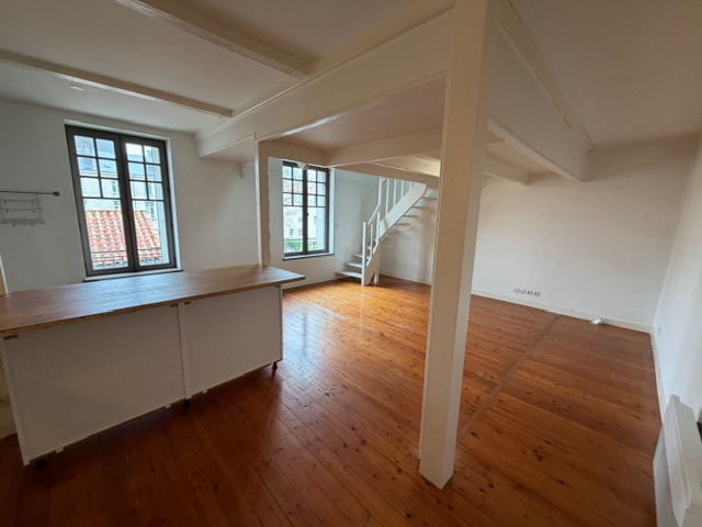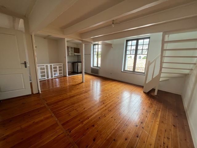 Dans le centre, proche place de Verdun, agréable appartement traversant et lumineux de 80m2 au sol ( 55m2 carrez) comprenant : entrée, séjour avec coin cuisine aménagé et équipé ( plaque de cuisson, hotte, refrigérateur), 1 chambre avec placard, salle d'eau, wc séparé A l'étage : une grande mezzanine permettant de faire un second couchage et un coin bureau Disponible de suite, loyer 835 euros, provision pour charges 52 euros, Honoraires 715EUR dont 165EUR pour l'état des lieux Je vous remercie par avance de bien voiuloir prendre le premier contact par mail à l'adresse suivante: larochelle@patimmo.com en indiquant vos coordonnées téléphoniques. Vous serez recontacté dans les meilleurs délais.