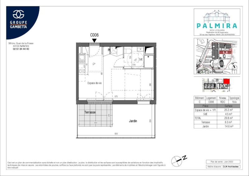 LES SORINIERES, un appartement T1bis comprenant : Une pièce de vie donnant sur une terrasse de 6m² et un jardin de 14.60m², un coin cuisine aménagé et équipé ( plaques / hotte), une salle d'eau avec wc. Parking privatif. Conditions de ressources Loi Pinel. « Les informations sur les risques auxquels ce bien est exposé sont disponibles sur le site Géorisques : www.georisques.gouv.fr »