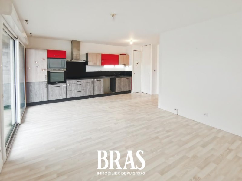 Un appartement de type 4 de 73.64 m² situé au 1er étage avec ascenseur et comprenant entrée, dégagement avec placard, séjour avec espace cuisine aménagé et équipé (four, four micro-ondes, réfrigérateur/congélateur, table cuisson induction et hotte) de 25.78 m² donnant sur terrasse de 10.25 m², 3 chambres (9.06 m²,9.06 m² et 11,49 m²), salle d'eau et WC séparés. 2 places de stationnements privatives.