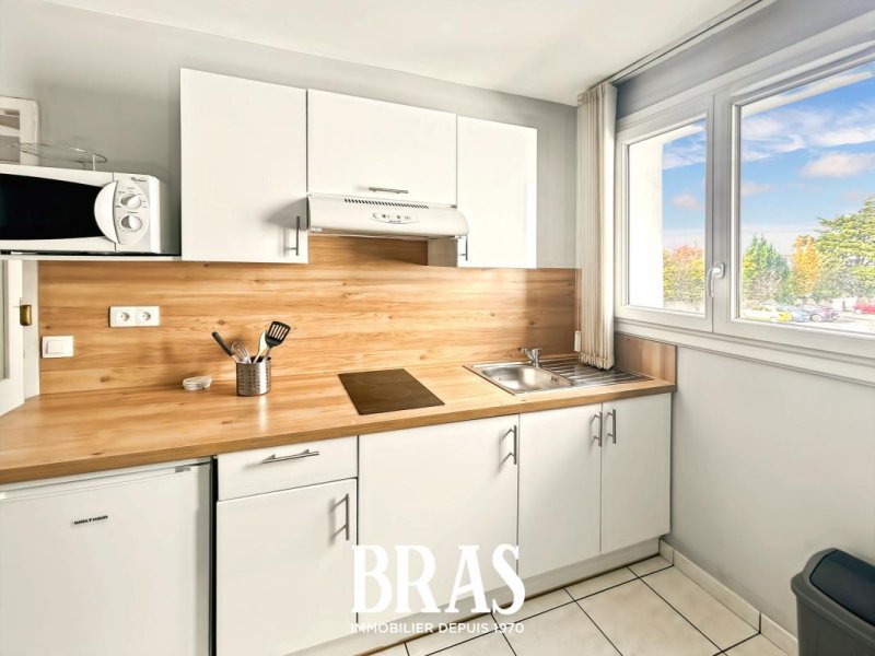 Boulevard du Manoir Saint-Lô - Proche de la place du marché du Vieux Doulon, un appartement MEUBLÉ de type 1 bis de 31.37m², situé au 1er étage et comprenant : entrée, séjour avec placard, une cuisine aménagée et équipée (plaque de cuisson vitrocéramique, hotte, micro ondes, four, réfrigérateur table top), une chambre, salle d'eau avec une douche, meuble vasque et WC.