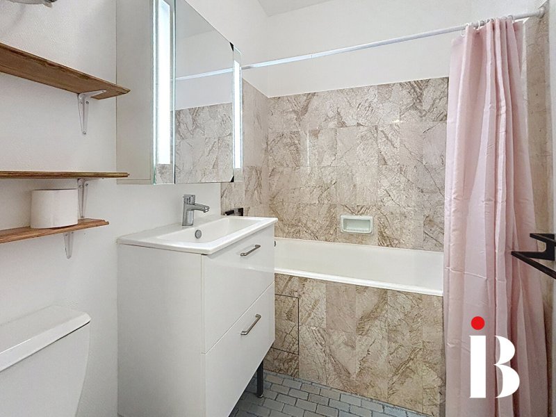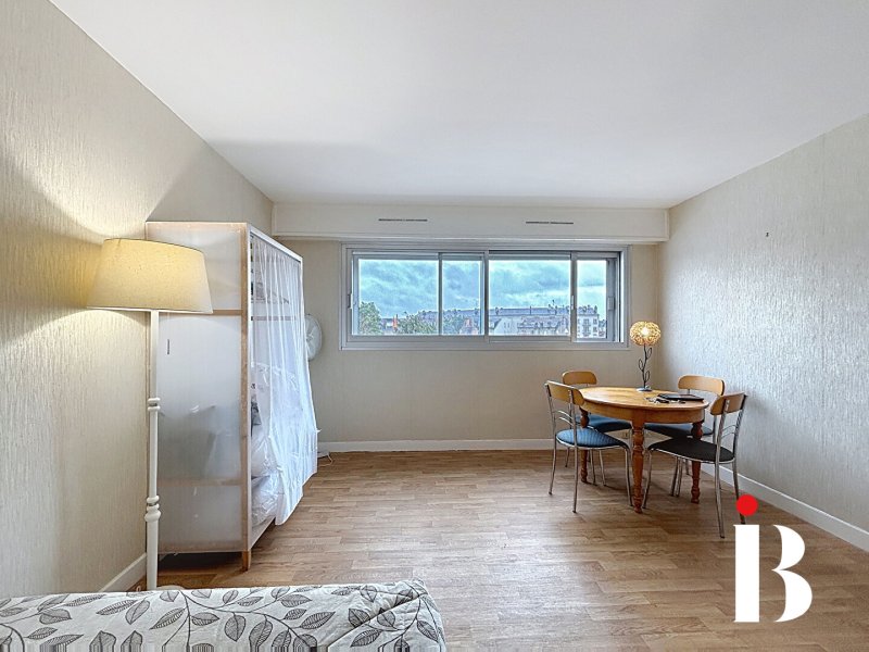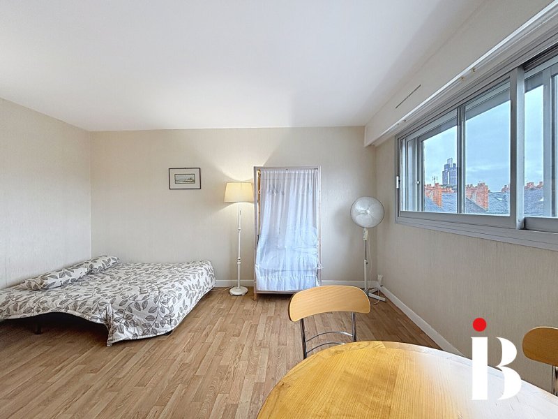 NANTES BD GUIST'HAU - Dans le triangle d'or, dans une résidence de standing, grand studio meublé, dernier étage avec ascenseur offrant : une entrée avec placard, un séjour exposé Est, un coin cuisine aménagée et équipée, une salle de bains avec WC. Cave et parking en sous-sol.