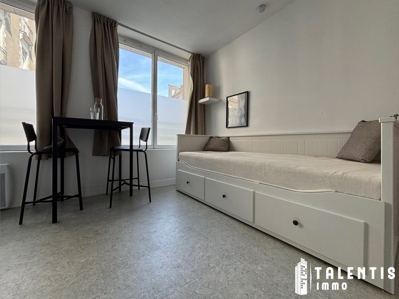 NANTES, DOBRÉE STUDIO (17m²) Résidence étudiante Meublé et équipé Laverie et local vélo En plein coeur du centre ville de Nantes, au 1er étage de la résidence étudiante sécurisée 'Le Graslin', ce studio entièrement meublé et parfaitement agencé est idéal pour un(e) étudiant(e). Il comprend : une pièce de vie avec kitchenette équipée et aménagée (réfrigérateur top et plaques de cuisson électrique) et une salle d'eau avec WC. La résidence dispose d'une laverie, d'un garage à vélo, d'un ascenseur et d'une gardienne. Transports en commun à proximité : Bus : 11 et 23. Chronobus : C1 et C3. Tram : Ligne 1. Chauffage individuel électrique. Loyer HC : 520.00 Charges mensuelles : 55.00 comprend l'entretien des parties communes et la consommation d'eau froide (provision donnant lieu à une régularisation annuelle). Loyer CC : 575.00 Dépôt de garantie : 600.00 Honoraires de location à la charge du locataire : 223.47 TTC (dont 51.57 d'état des lieux inclus). Disponible. Réf. LA2201 Honoraires de 223 TTC à la charge du locataire. Loyer de base 520 /mois. Provision sur charges 55 /mois, régularisation annuelle. Dépôt de garantie 600 . Classe énergie C, Classe climat B Montant moyen estimé des dépenses annuelles d'énergie pour un usage standard, établi à partir des prix de l'énergie de l'année 2021 : entre 379.00 et 514.00 . Les informations sur les risques auxquels ce bien est exposé sont disponibles sur le site Géorisques : georisques.gouv.fr. . Talentis, l'immobilier sur mesure.
