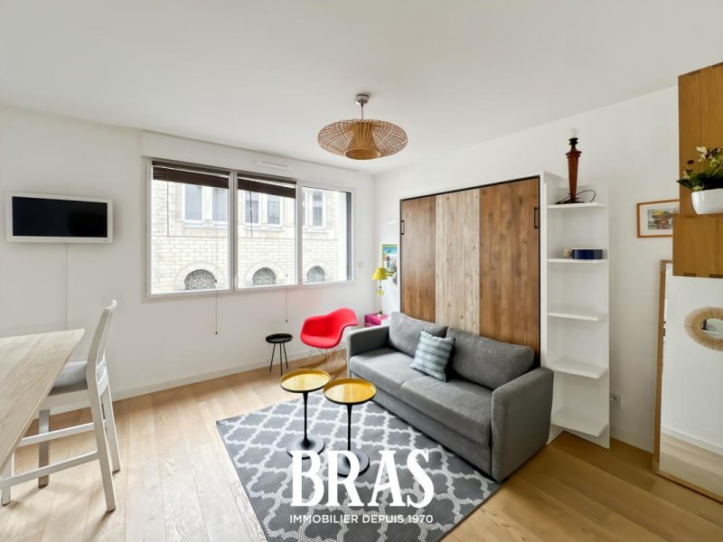 Rue des Deshoulières - Dans une résidence de 2021 de grand standing, appartement MEUBLÉ de type 1 de 27.3 m² situé au 1er étage avec ascenseur et comprenant : entrée, pièce de vie avec placard et lit escamotable, une cuisine aménagée et équipée (micro-onde, plaques de cuisson, réfrigérateur, lave-vaisselle, four et machine à laver) une salle d'eau avec douche, WC, nombreux rangements.