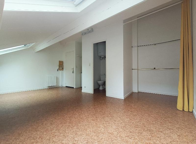 Studio - Hypercentre / Graslin - Nantes Centre ville - Entre le bd Guist'Hau et la Place Graslin, à proximité de toute commodité. Un studio idéal pour étudiant, dans un petit collectif ancien et calme. Ce studio n°18 de 17.5m² au 2ème étage sans ascenseur, mansardé, se compose d'une grande pièce de vie lumineuse (2 grands velux), d'un coin cuisine équipée (frigo, plaques de cuisson), d'une salle d'eau avec wc. Un grand renfoncement pouvant être aménagé en dressing s'ajoute à ce bien. Chauffage individuel électrique. Cour intérieure commune avec rail de stationnement pour les vélos. Libre de suite.
