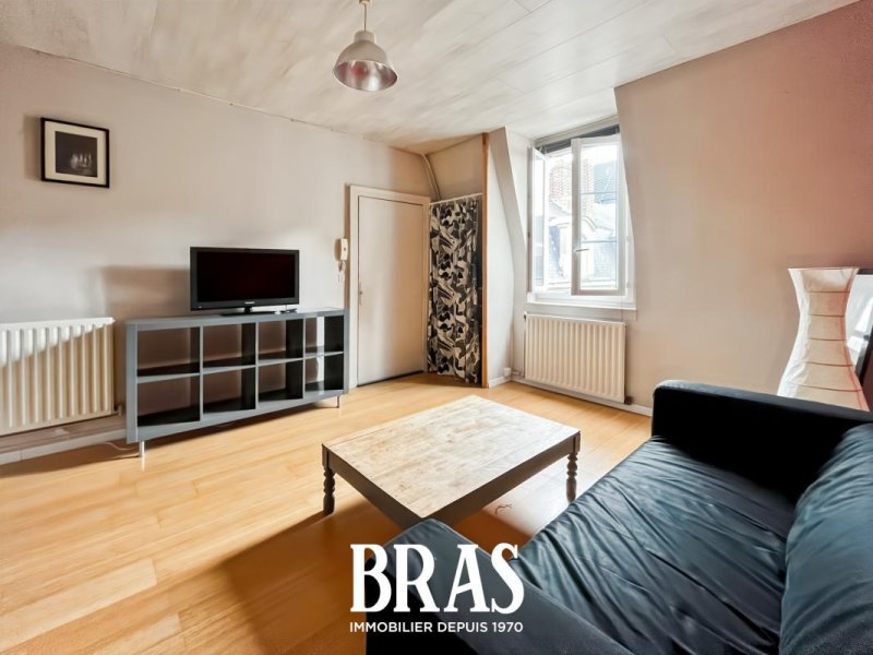 Au coeur du centre ville, dans un immeuble de charme, au 4ème et dernier étage sans ascenseur, logement de type 1 bis de 29.25 m² (loi carrez) entièrement MEUBLE au calme donnant sur la cour intérieure et comprenant : une pièce de vie avec un coin bureau de 22.67 m² , un coin cuisine aménagé et équipé (réfrigérateur, plaques de cuisson four, micro-onde), une mezzanine pour le coin nuit avec de nombreux rangements et une machine à laver, une salle d'eau avec lavabo et WC.
