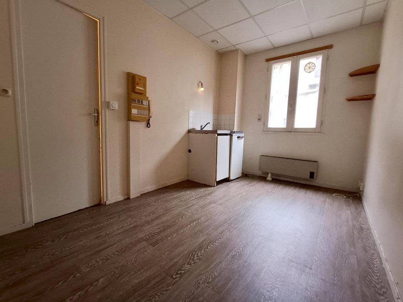 STUDIO GRASLIN - Nantes Centre ville - CENTRE VILLE, proche GUIST'HAU et GRASLIN, commerces de proximité et transports en commun, dans un petit collectif, petit studio (n°17) de 12.3 m², en fond de cour au calme, comprenant une pièce de vie principale avec kitchenette équipée (plaques et frigo), salle d'eau avec wc - chauffage ind. élec. - Libre de suite.