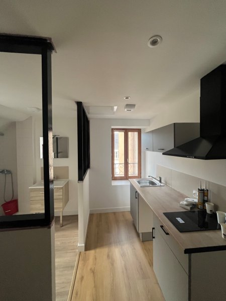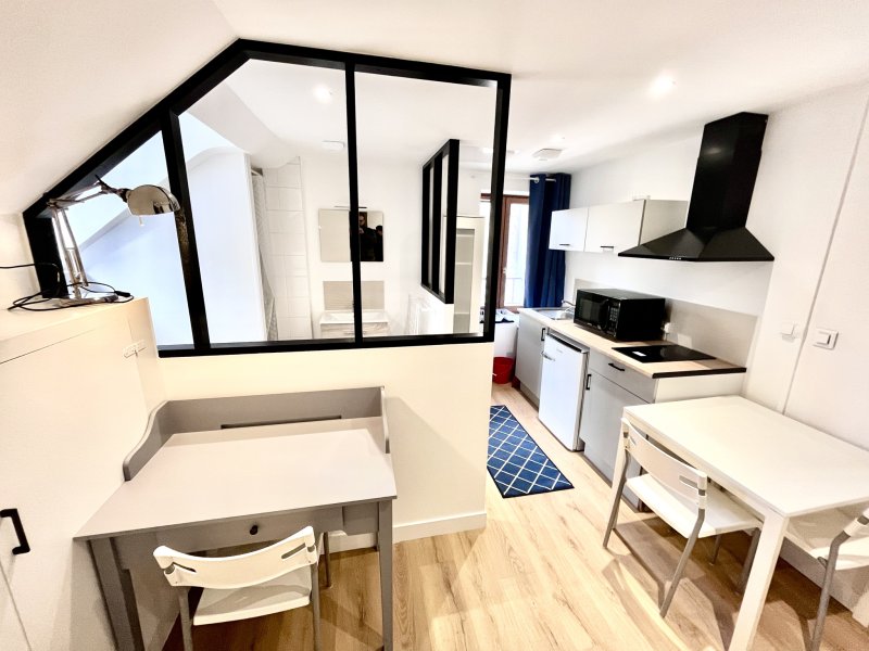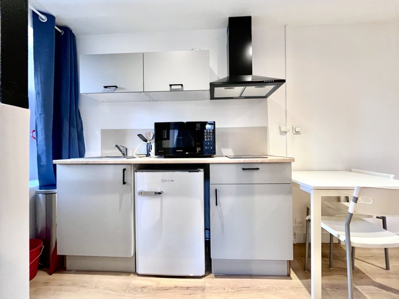 A louer au centre ville de NANTES, 8 rue Crébillon un studio entièrement réagencé et rénové. Composé d'une pièce de vie avec kitchenette équipée, et salle de douche ouverte. Décoration moderne, c'est au 5ème sans ascenseur. Pour visiter ce studio, contacter le Cabinet PUGET au 02 51 84 54 54