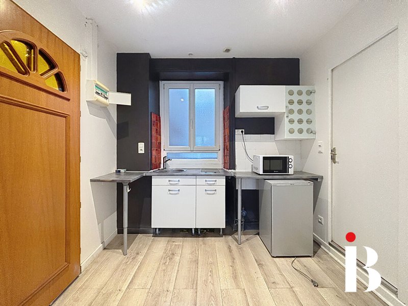 pièce principale, kitchenette aménagée et équipée (plaques de cuisson), salle d'eau avec WC et arrivée d'eau .