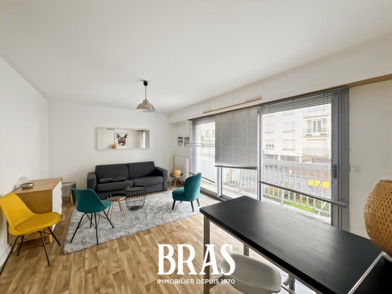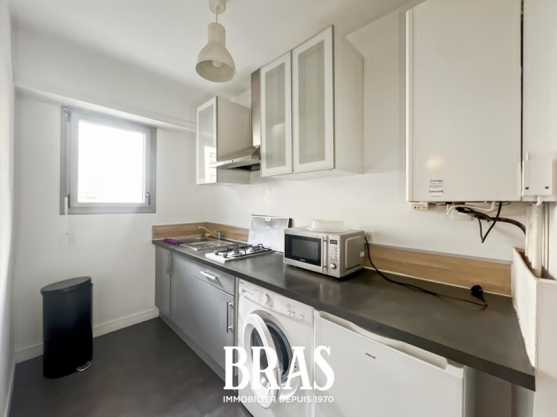 Rue des Folies Chaillou - Charmant appartement type 1 MEUBLÉ de 33,27m² situé au 1er étage avec ascenseur et comprenant : une entrée avec placard, un séjour de 19,64m² donnant sur balcon, une cuisine aménagée et équipée (plaques de cuisson, lave-linge, four et hotte), une salle de bain avec baignoire, meuble vasque et WC.
