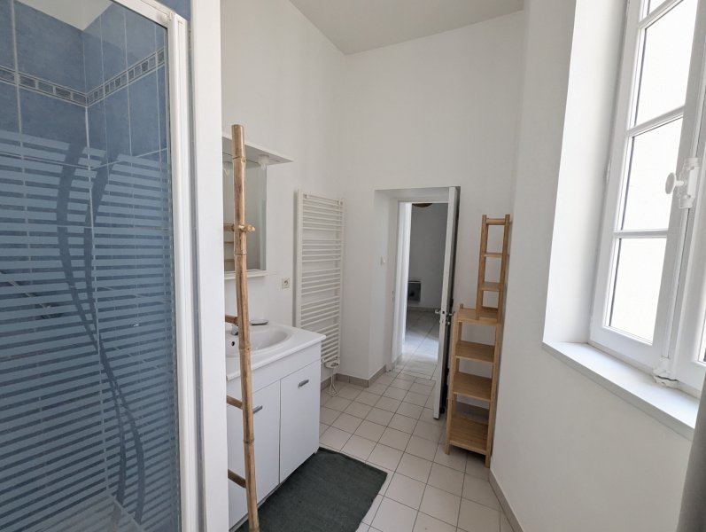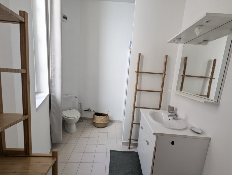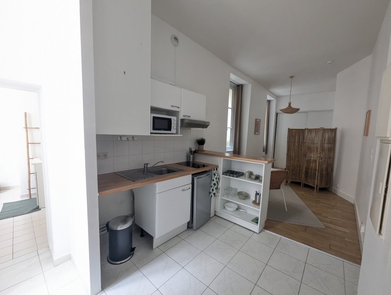 RUE ST NICOLAS - En hyper centre-ville, proche des transports et des commerces, au calme côté cour, appartement T1 meublé de 27m2. Cet appartement comprend une pièce de vie sur parquet avec belle hauteur sous plafond, un coin cuisine aménagée et équipée (plaque de cuisson, hotte, réfrigérateur, meuble bar), une salle d'eau avec wc.