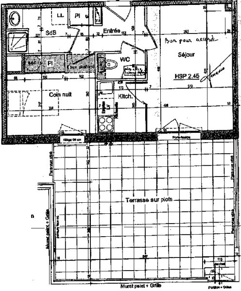 NANTES - QUARTIER DES HAUTS PAVES, appartement comprenant un séjour de 17,15 m² sur terrasse de 31,48 m², un coin cuisine aménagé et équipé (2 plaques + frigo), une chambre avec placard, sde, wc, entrée avec placard. Parking couvert.