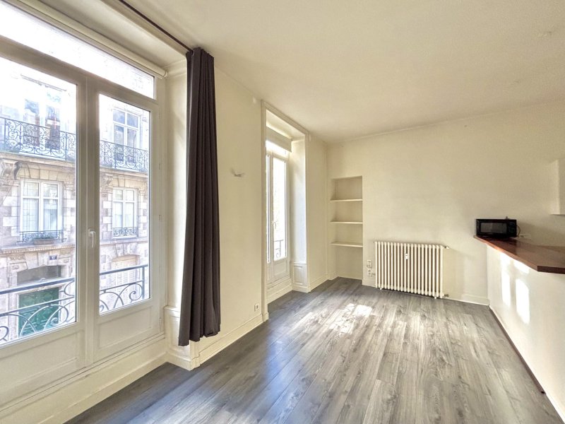 En hypercentre de Nantes, à proximité de la Place Graslin, des commerces et des écoles supérieures. Ce spacieux T1 bis de 31m2 non meublé comprend une entrée, une pièce de vie avec cuisine aménagée équipée (plaques de cuisson, four, réfrigérateur) et une salle d'eau avec wc séparés. Loyer : 570 + 40 de provisions pour charges comprenant l'eau froide, le chauffage et l'entretien des parties communes. Dépôt de garantie : 570 Honoraires : 405,47 (soit 13/m²) dont 93.57 (3/m²) pour l'établissement de l'état des lieux d'entrée. Les informations sur les risques auxquels ce bien est exposé sont disponibles sur le site Géorisques : www.georisques.gouv.fr Classe énergie : D Classe climat : CMontant estimé des dépenses annuelles d'énergie pour un usage standard (prix 2021) : 500 à 672DPE réalisé le 11-08-2023 comprenant 93 TTC pour l'état des lieux. Loyer de base 570 /mois. Provision sur charges 40 /mois, régularisation annuelle. Dépôt de garantie 570 . Classe énergie D, Classe climat C Montant moyen estimé des dépenses annuelles d'énergie pour un usage standard, établi à partir des prix de l'énergie de l'année 2021 : entre 500.00 et 676.00 . Les informations sur les risques auxquels ce bien est exposé sont disponibles sur le site Géorisques : georisques.gouv.fr.