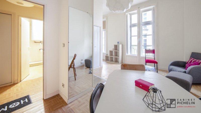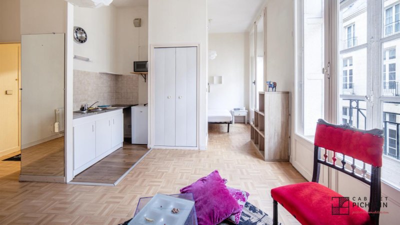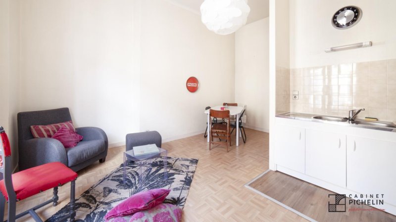 Nantes Centre, Rue Crébillon, au coeur du centre, au 3ème étage d'un immeuble de caractère avec ascenseur, très bel appartement meublé en bon état. Ce bien de qualité offre une entrée avec placard, pièce principale avec cuisine équipée ouverte, petite chambre, salle d'eau avec WC.