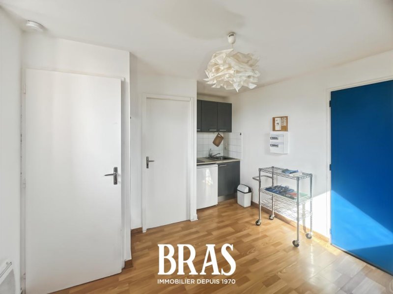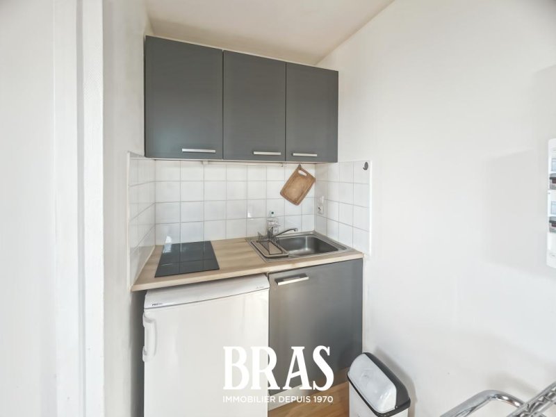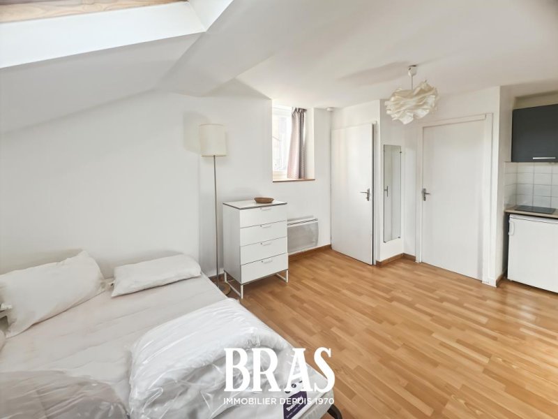 Studio MEUBLÉ de 17,41 m² situé au 3ème étage et dernier sans ascenseur et comprenant : séjour ouvert sur kitchenette aménagée et équipée (plaques de cuisson, hotte et réfrigérateur table top), une salle de bains avec lavabo et WC.