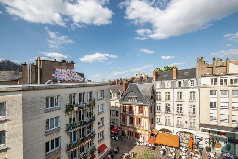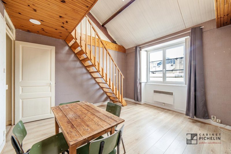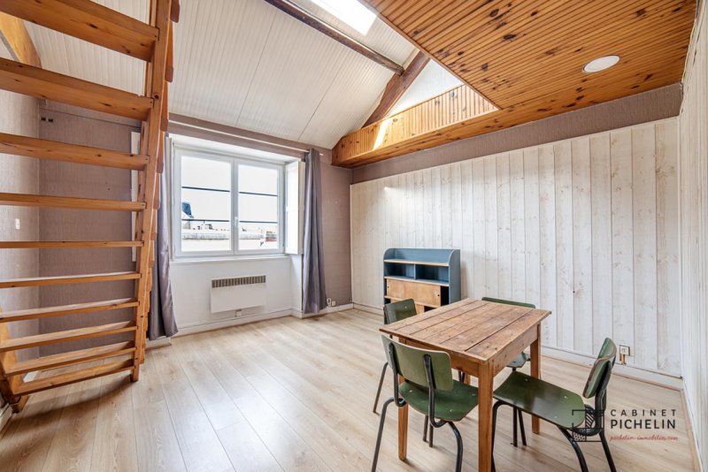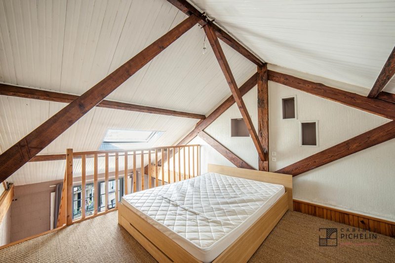 Nantes centre - Decré, à proximité immédiate des transports, de la gare et des commerces, bel appartement de type 2 meublé en bon état, situé au 5e étage et dernier étage d'une petite copropriété de caractère. Ce bien offre entrée, vaste pièce de vie très lumineuse, cuisine aménagée/équipée, une chambre en mezzanine, salle de bains avec WC. Un bien aux beaux volumes et au charme certain.