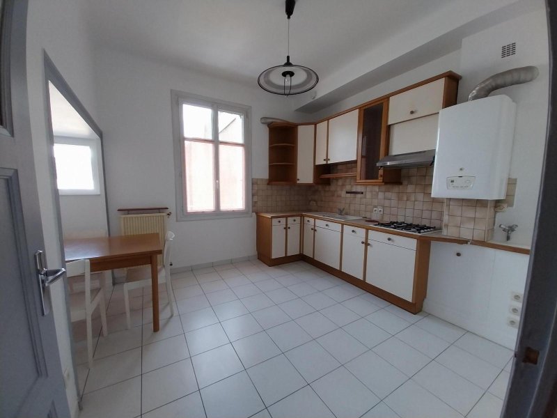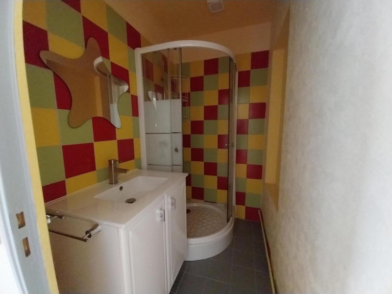 Un appartement de type 2 situé au premier étage comprenant : Une entrée, un charmant séjour avec parquet massif, une cuisine, une chambre, une salle d'eau avec meuble vasque et douche, WC.