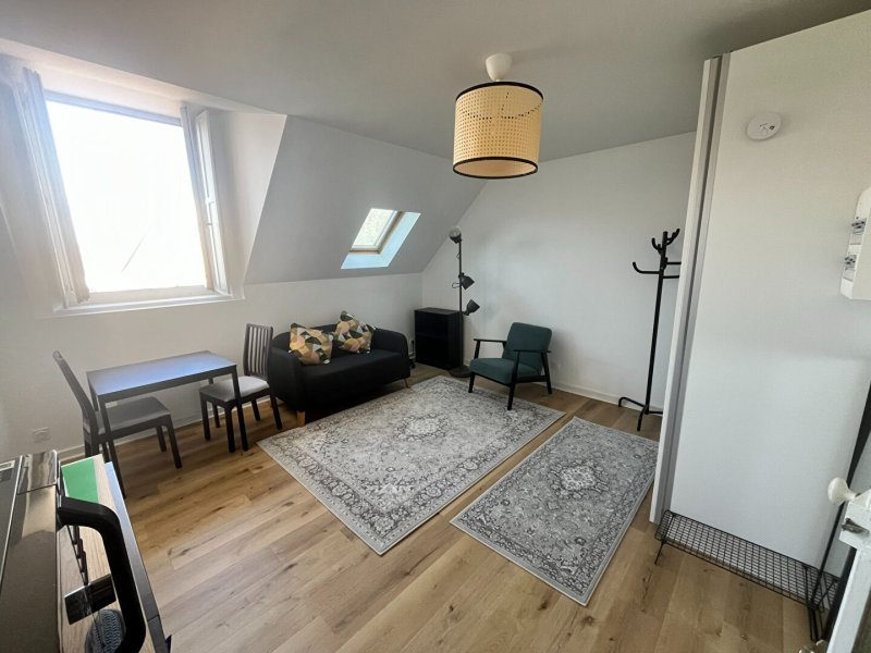 Situé au 3ème et dernier étage, cet appartement de 30,29 m² habitables (33,57 m² au sol) a été entièrement refait à neuf, mobilier compris, et est disponible de suite.