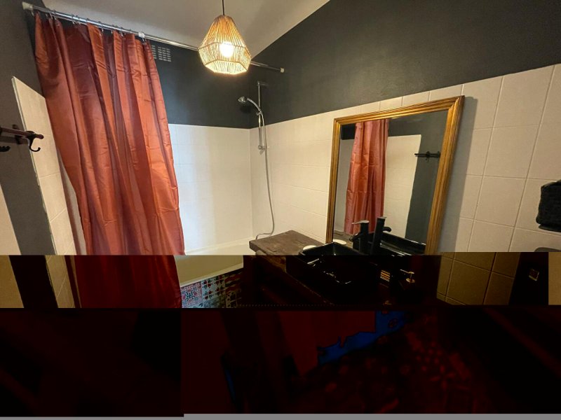 - d'un séjour lumineux (canapé, télévision, table à manger, rangements, et même un siège balançoire)