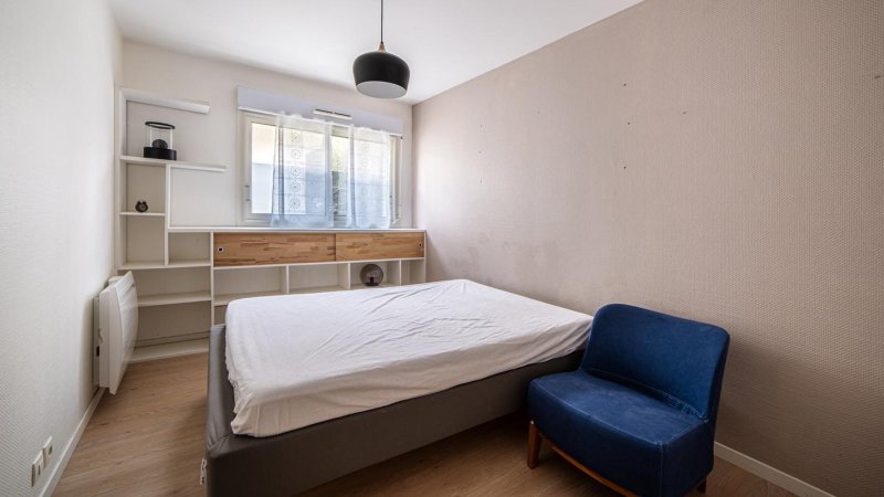 Au pied du centre, des transports et de toutes commodités, au 1er et dernier étage d'une petite copropriété de bon standing, superbe type 2 meublé entièrement rénové offrant entrée avec placard, salon sur parquet avec cuisine équipée ouverte (four, plaques, hotte, réfrigérateur congélateur, micro-ondes et lave-linge) donnant sur petite terrasse sud-est sans vis-à-vis, chambre avec placard, salle de bains et WC.