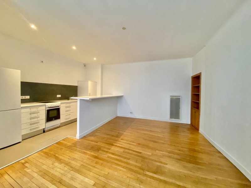 Rue du Roi Albert, idéalement situé dans le centre de Nantes au pied de la Cathédrale, proche des commerces et des transports en commun. Au 1er étage sans ascenseur de cette résidence bien entretenue, un appartement de Type 2 de 41,88 m² offrant, une pièce de vie avec cuisine aménagée et équipée (réfrigérateur et cuisinière électrique), une chambre avec placard, et une salle d'eau avec wc. Chauffage individuel électrique.