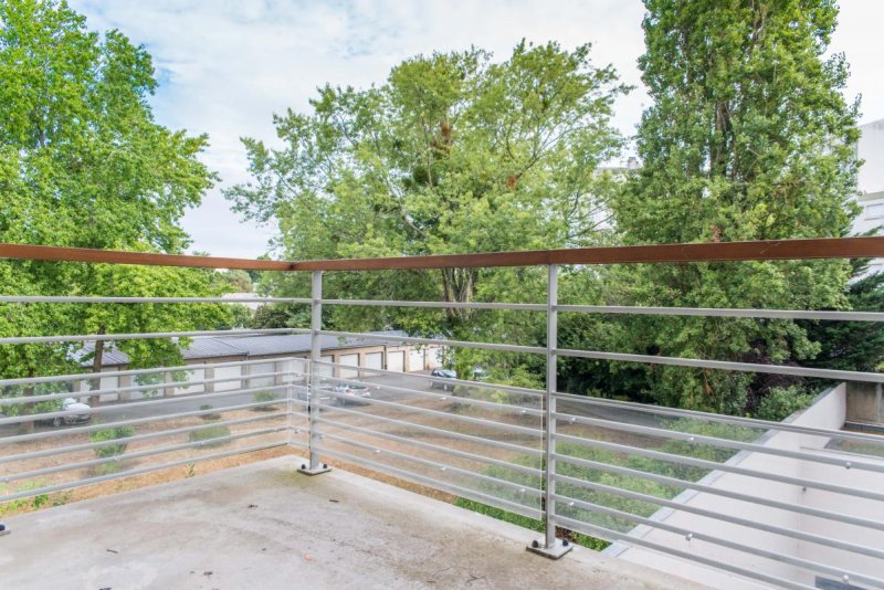 Nantes - Saint Donatien, au calme absolu, à 100 mètres de l'Erdre, des commerces et des transports, au 2ème étage avec ascenseur d'une résidence récente de grand standing, bel appartement de type 2 inondé de lumière et fonctionnel offrant vaste salon séjour avec cuisine aménagée équipée (2 plaques et réfrigérateur) donnant sur 2 terrasses et vue sur verdure, chambre avec placard, salle de bains et WC. Local vélos. Accès PMR. GLI en place.