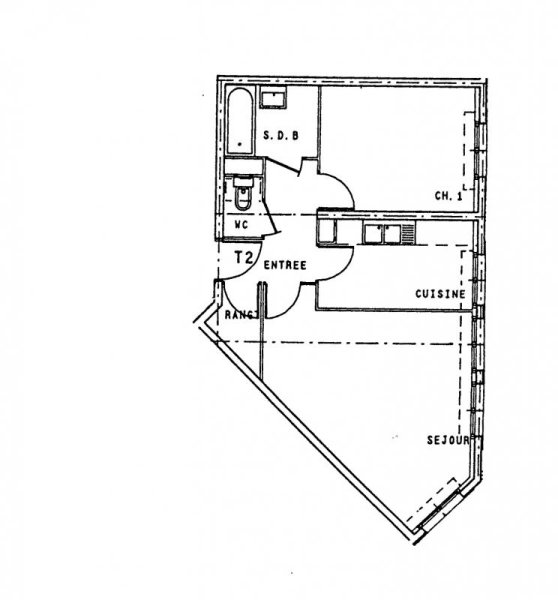 NANTES - QUARTIER DALBY, Appartement T2 comprenant : Une entrée avec placard, un séjour, une cuisine aménagée et équipée (plaque), une chambre, une salle de bains, wc. Parking couvert. Proche Tram et commerces.