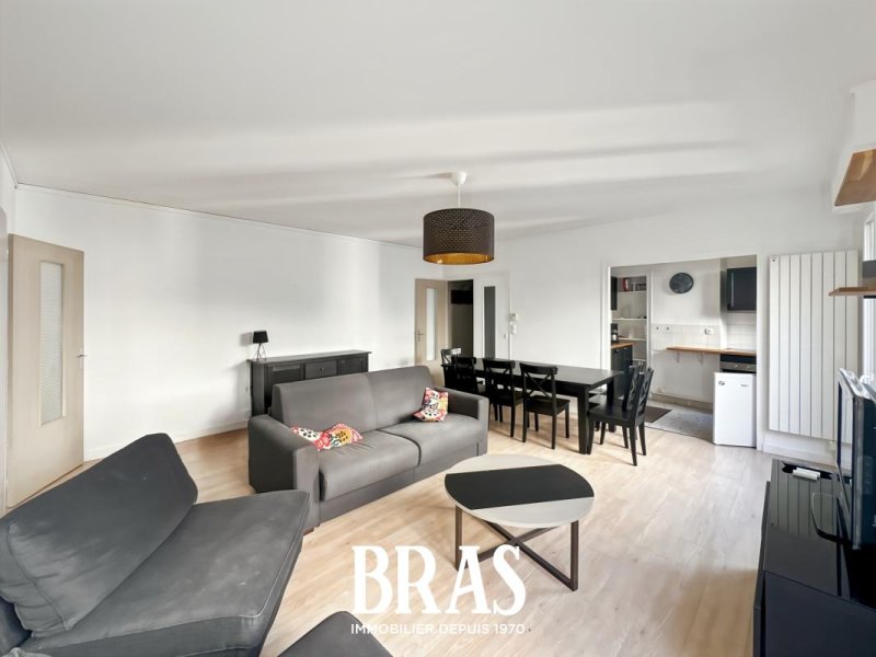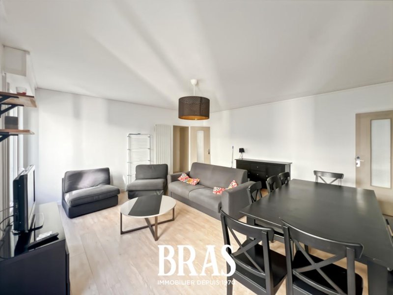 Rue Scribe - Appartement MEUBLÉ de type 2 de 57.08 m² situé au 2ème étage sans ascenseur et comprenant : entrée avec placard avec une machine à laver, vaste séjour avec cuisine aménagée et équipée (plaques de cuisson, lave-vaisselle, four, hotte et réfrigérateur table top), une chambre avec dressing, salle de bains avec baignoire et sèche serviette, WC séparés.