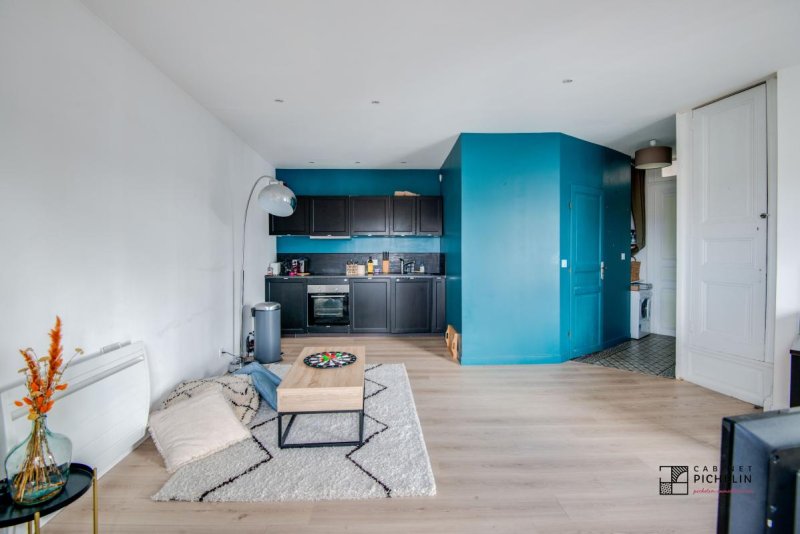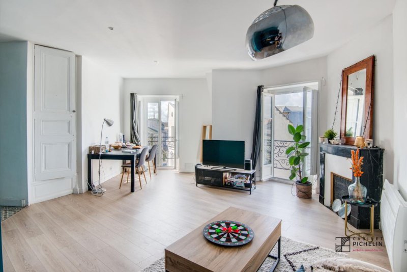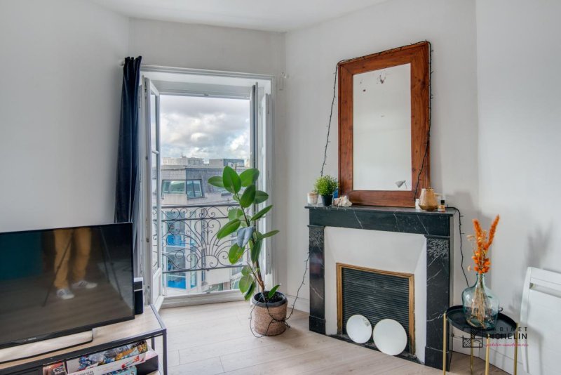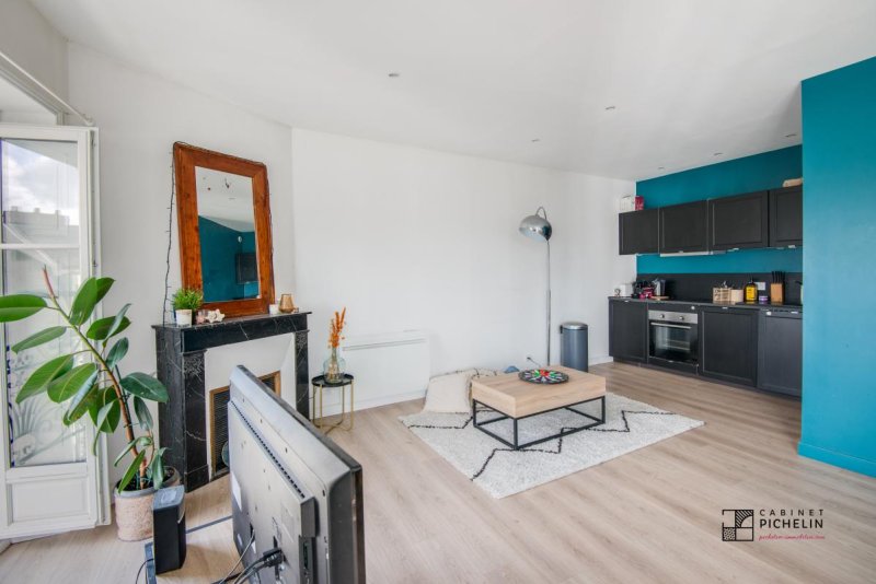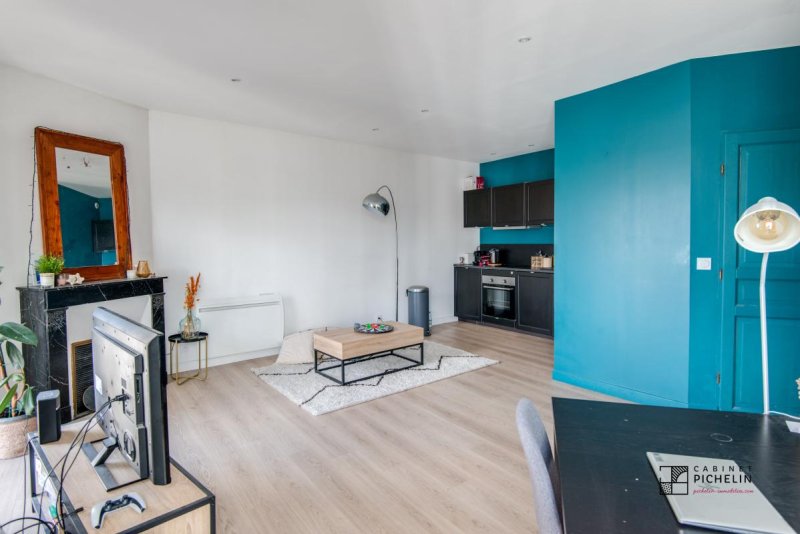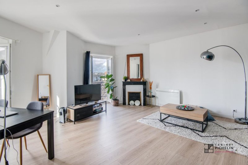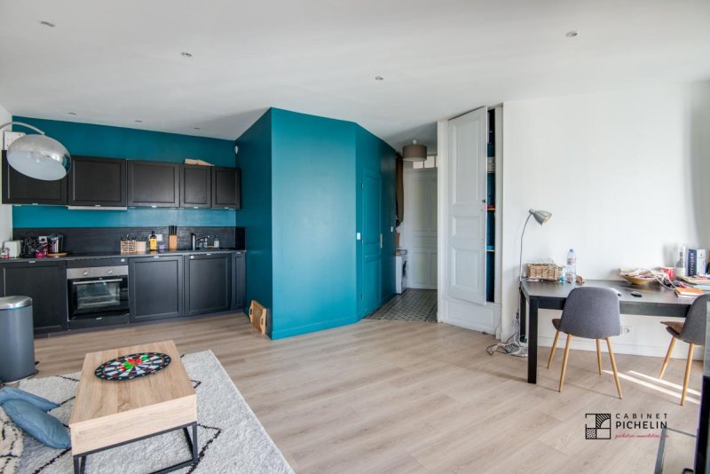 Nantes Centre historique, Aux pieds des commerces, des transports et de la Cathédrale, au 4ème et dernier étage d'un très bel immeuble de caractère, superbe appartement de type 2 inondé de soleil et fonctionnel offrant entrée, vaste réception avec cuisine ouverte exposée sud-ouest, salle d'eau avec WC et chambre. Caveau.