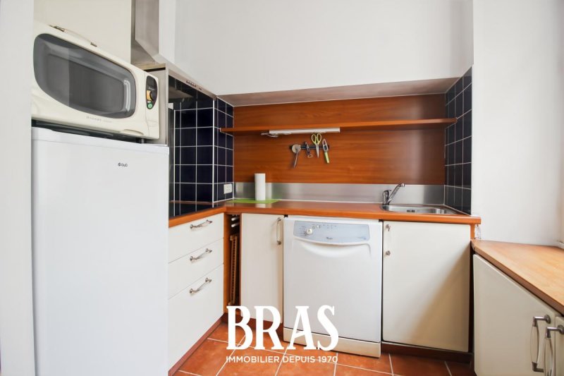 Rue Montaudouine - Un appartement T1 Bis MEUBLÉ de 33.13 m² situé au 3ème étage sans ascenseur et comprenant : entrée avec placard et une machine à laver, une pièce de vie de 17.47 m², une cuisine aménagée et équipée de 4 plaques de cuisson vitrocéramique, lave-vaisselle, micro onde/grill, réfrigérateur et hotte, espace nuit avec placard, salle d'eau avec douche, meuble vasque et WC.