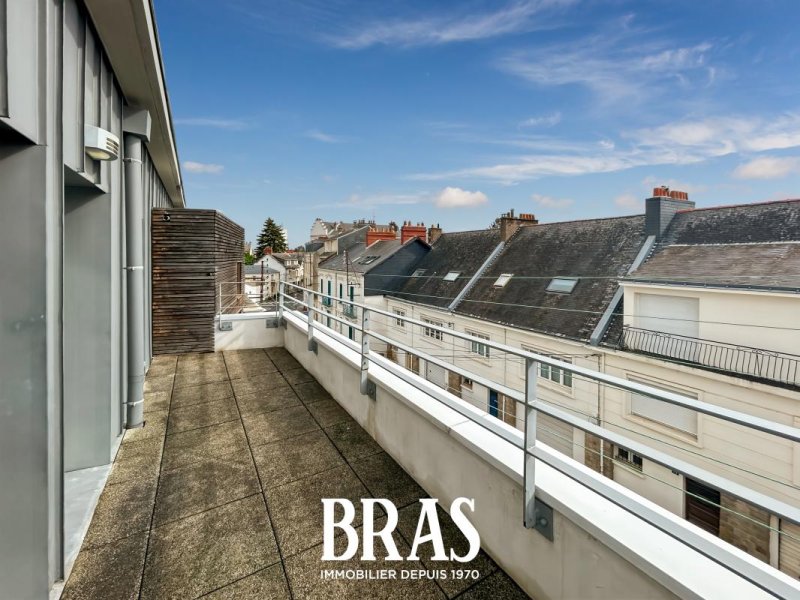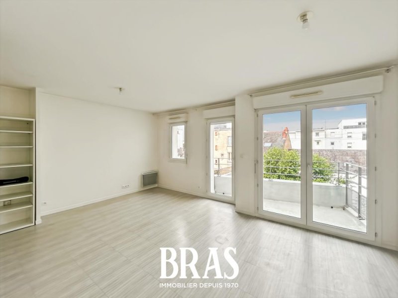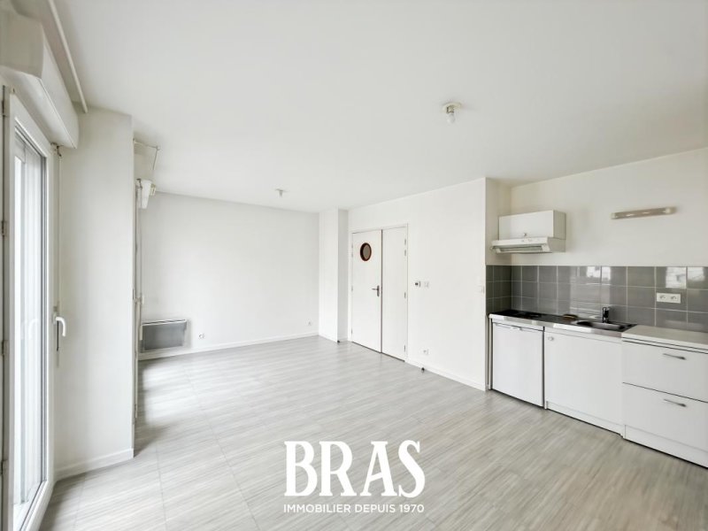 Appartement T2 au calme d'une petite copropriété de 2011, de 42.70 m² situé au 3ème étage sans ascenseur et comprenant : entrée avec placard, séjour avec coin cuisine équipée (plaques, hotte) donnant sur balcon, une chambre avec placard donnant sur une terrasse de 9.75m², salle d'eau avec WC.