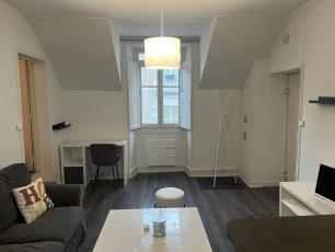 Quartier GRASLIN - Appartement de type 2 meublé d'une surface de 33,85 m2. Ce bien comprend un séjour avec une cuisine aménagée et équipée (plaque de cuisson, hotte, réfrigérateur, micro-ondes, four combiné, lave linge et une TV), une chambre (lit double) ainsi qu'une salle d'eau avec WC. Equipement supplémentaire : bouilloire, aspirateur, table à repasser. Coin bureau. La provision sur charges comprend la part locataire des charges de copropriété et l'eau froide. Quartier agréable, appartement lumineux. A deux pas de la place Graslin et du passage Pommeraye. Transports en commun : tramway lignes 1, 2 et 3. Honoraires de location : 440,05 EUR TTC dont 101,55 EUR d'état des lieux d'entrée. Dépôt de garantie : 1420,00 EUR TTC soit 2 mois de loyer hors charges pour une location meublée. Référence : RAM2. Les informations sur les risques auxquels ce bien est exposé sont disponibles sur le site Géorisques : https://www.georisques.gouv.fr/.